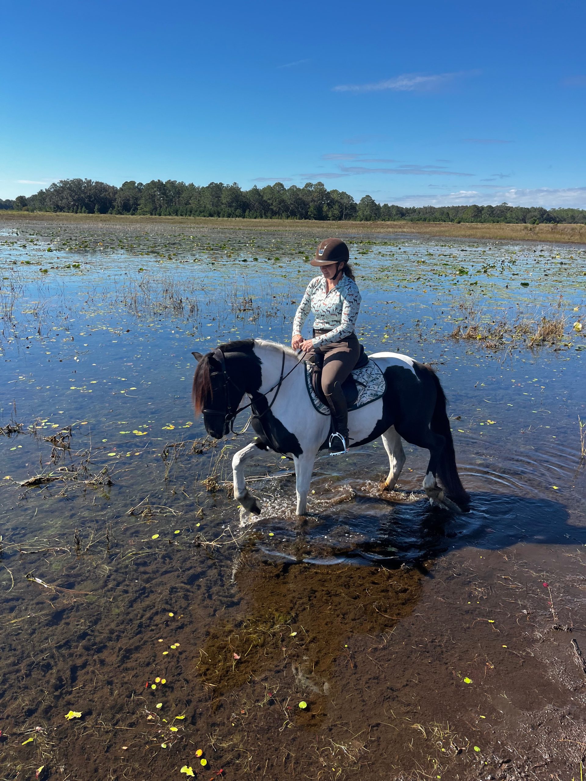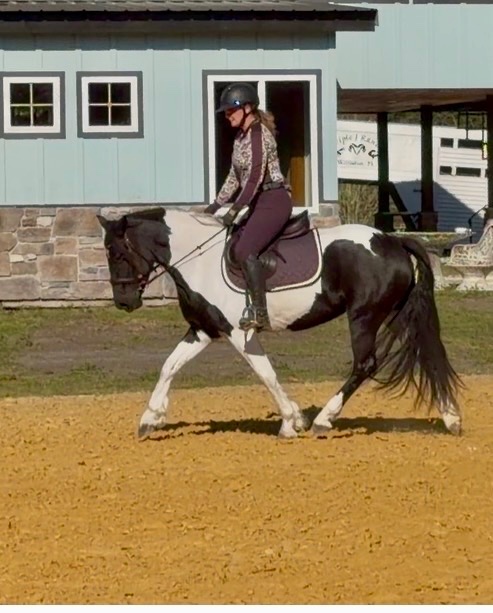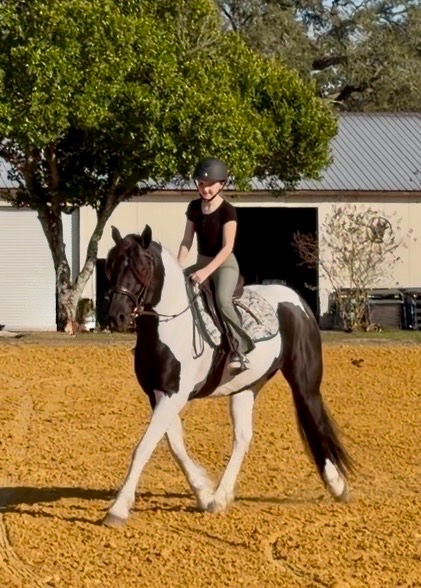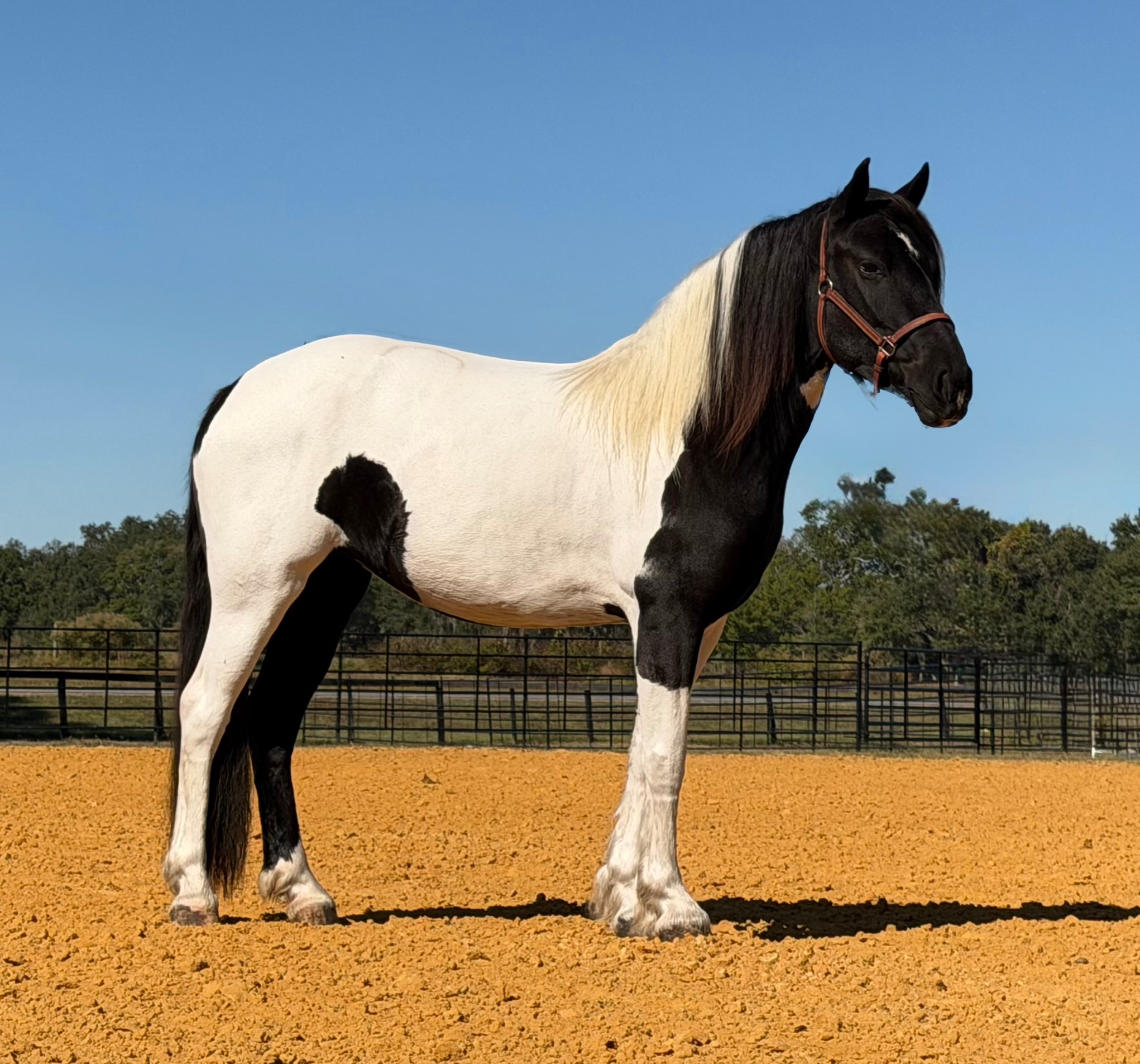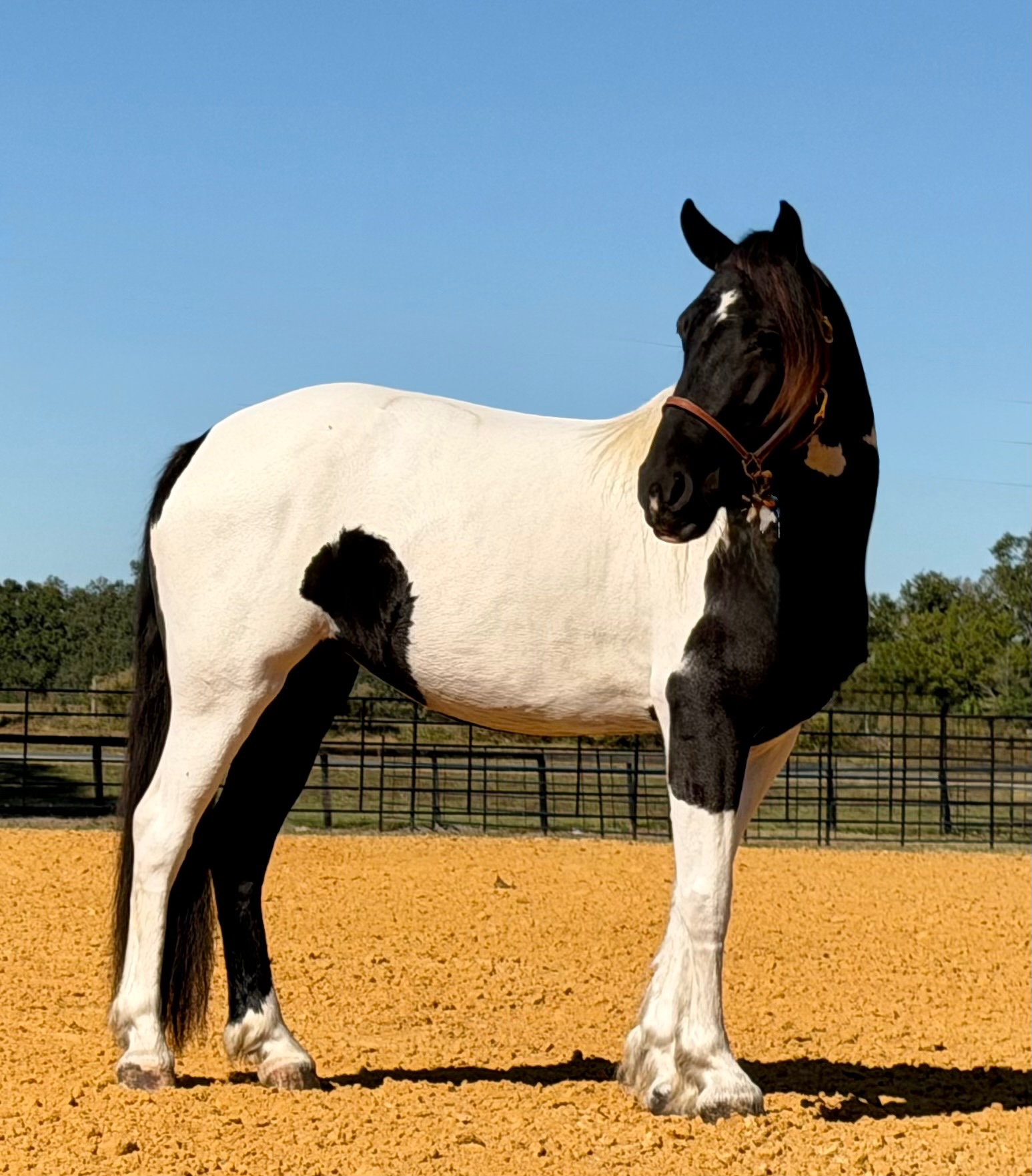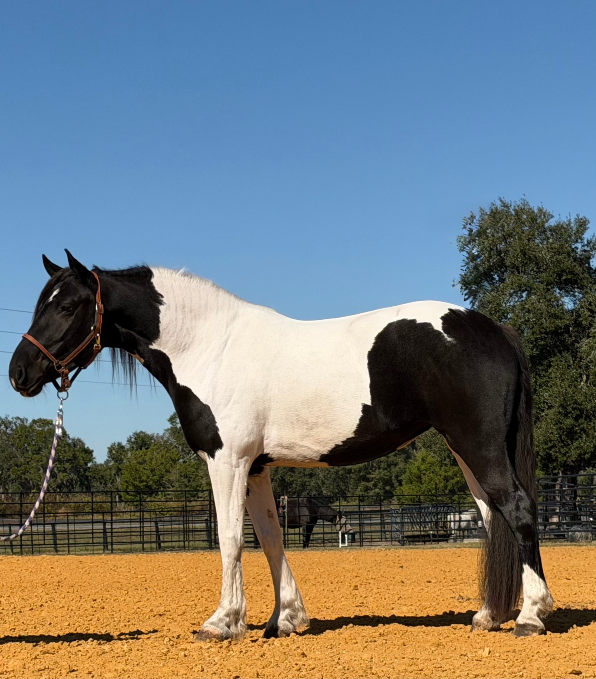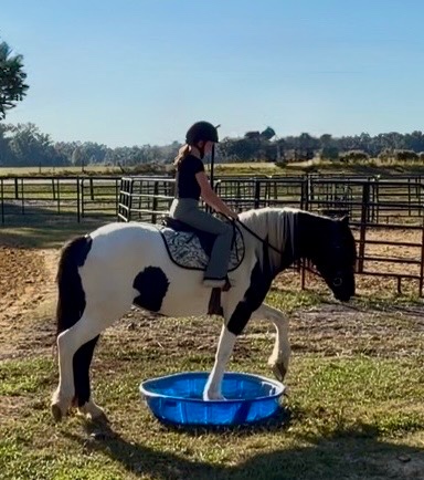 Description: Trixie is a black and white Friesian Sport Pony. There is not enough space to write how perfect she is. I’ll let the videos speak for themselves but here is a little info on her. At just 3 years old Trixie has been started professionally, slowly and correctly. She is the most honest and legit mare I have ever had the pleasure of starting. She is 100% sound and sane in every way I can imagine. She will meet you at the gate or anywhere in the pasture, she’s affectionate and so so personable. Trixie has outstanding ground manners and is perfect for grooming, bathing, clipping and the farrier. She stands at the mounting block, walks off quietly, has an outstanding trot and her canter is even better, lateral movements have been started and she backs with a light hand. She does everything in a snaffle. Trixie has been as game as any horse to walk into the lake on our first trail ride and do ALL the obstacles our first time out to obstacle play day. She doesn’t need an adult to “make” her do anything, she loves every challenge and will take a kid through it all. From our first day with her almost a year ago, including starting her, she has NEVER bucked, reared, bolted, spooked, kicked, bitten or anything else you can think of. She has been quiet and willing from day one. Trixie is quiet and honest enough for a kid or beginner, she won’t take advantage. She has talent for days, her quality is second to none for a professional to produce. I know every ad says that but I recommend watching her videos and you be the judge. Trixie is up to date on all vaccines, worming, dental, and farrier. Zero health , lameness issues or vices. Oh, I forgot to mention she has also started driving!