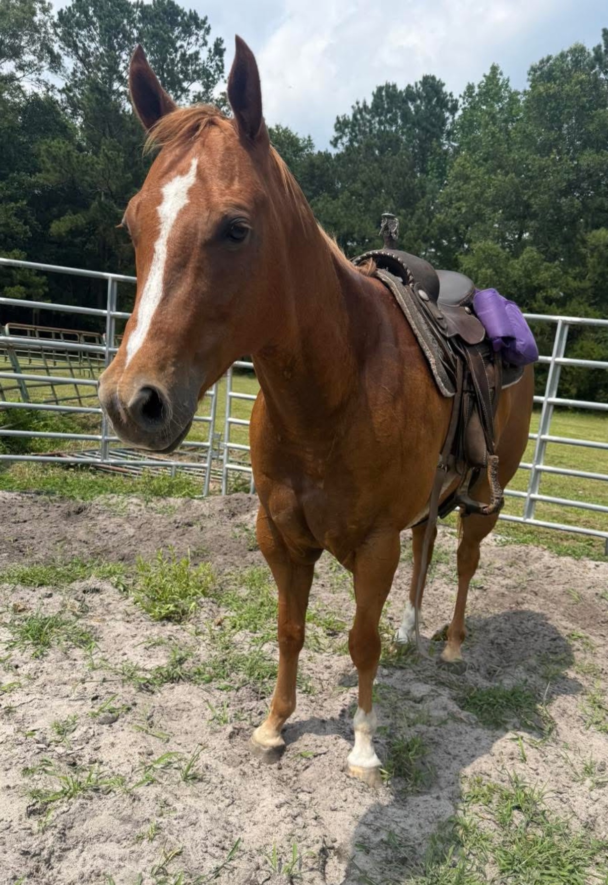 Description: Ranger is a 9 year old sorrel gelding used as a husband horse on trails. He's been ridden by intermediate riders in the ring but prefers to plod down trails. He comes right up to you for snuggles and is low maintenance. Not spooky, stands quiet for bathing, farrier and vet. A no-nonsense kind of guy.