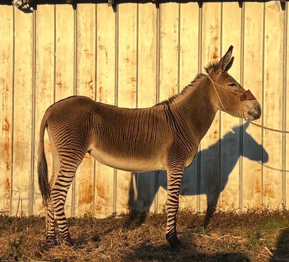 Zelda is a 2 year old Zonk. Broke to ride and lead. She is sound and sane She will lead, load, bathe, and tie! Zelda loves her treats and very in your pocket!