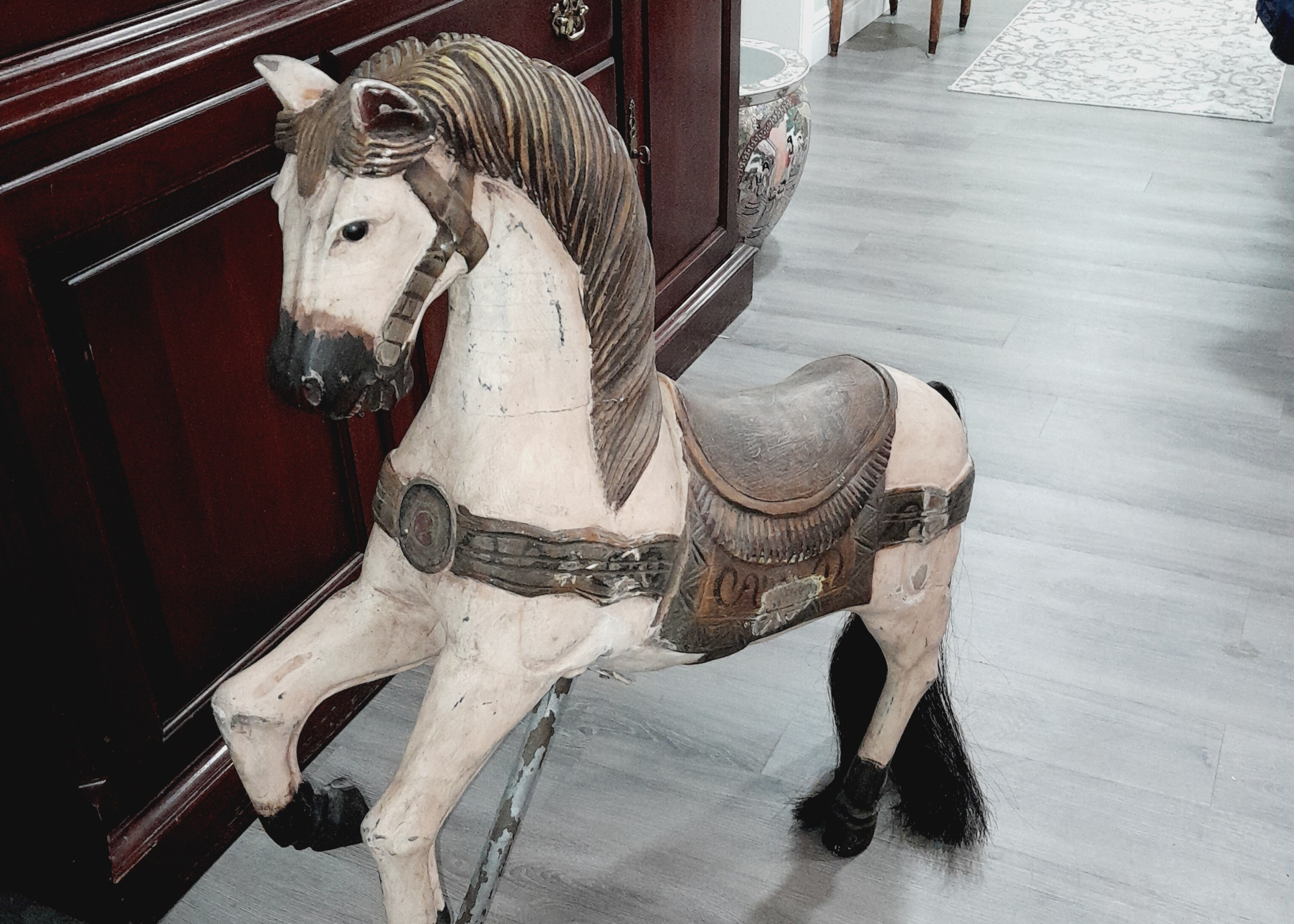 Vintage French Wooden Carousel Horse, heavy in weight and hand carved, Circa early 1900’s.